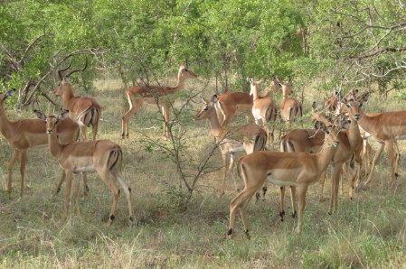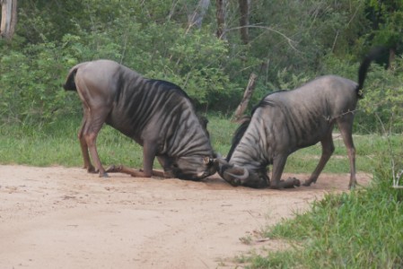 Due ghepardi ci guardano stupiti, altri si degnano appena di riscuotersi da un sonno beato sotto il sole, un paio di leonesse giocano, le zebre si curano pochissimo di noi, un leone mezzo addormentato ci prende appena in considerazione, impala e giraffe, nyala, facoceri, bufali ostentano una perfetta indifferenza rispetto a noi. Due gnu si azzuffano: la loro è una lotta così ordinata che sembra un rito. Una iena emerge dal bush, ci esamina un secondo e scompare. Una gazzella spunta da dietro un albero: è regale, elegante.