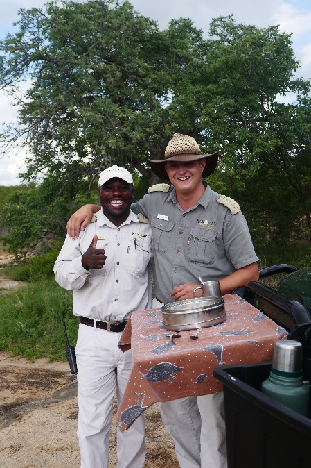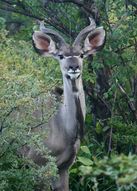 Questo ci hanno detto le nostre due guide, Adolf e Mosco. Il primo è un giovanottone coi capelli biondi e ricciuti, l’aria svagata e ironica di un ragazzo di buona famiglia che ha scelto questo mestiere un po’ per gioco. Mosco invece è nero e ha la dolcezza dei neri di qui, il loro senso di dignità e rispetto di se stessi e degli altri. Il fuoristrada di cui io e Valeria siamo le uniche ospiti (che insperata fortuna!) ha, come quello che abbiamo preso a St Lucia, due ordini di posti sopraelevati l’uno rispetto all’altro ed anche rispetto al sedile del guidatore, così da configurare una sorta di minuscola scalea teatrale. Ciò che questa macchina ha di nuovo, però, è un sedile agganciato al di fuori, a lato del fanale sinistro. Vi siede appunto Mosco, il tracker, colui che cerca le tracce degli animali, mentre Adolf è alla guida, a destra, come sempre in Sud Africa. Ha un modo di condurre allegro, pronto a seguire i suggerimenti di Mosco, o magari le sue domande (che noi non sentiamo): non c’è dirupo che lo fermi, fronde spinose che non si senta di spezzare per farci passare, marce indietro tra arbusti e rovi che non si senta di intraprendere. I sobbalzi non si contano, ma ci prende l’eccitazione della ricerca, l’ansia di spiare tra gli alberi, di riconoscere gli abitanti di questo enorme parco nazionale, il Kruger, il maggiore di tutto il Sud Africa: noi stiamo attraversando in verità una delle tante riserve private al suo interno.