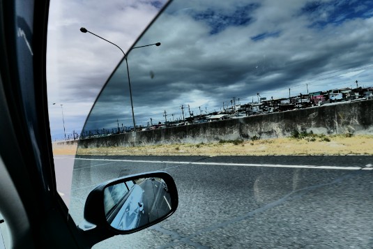 E mettersi in viaggio implica riempire il motore di benzina, caricarsi di taniche d’acqua, di cibo e di fiducia che niente succederà, e che non si forerà neanche una gomma. Chi chiamare, altrimenti, per danni che si è incapaci di riparare? Anche i collegamenti telefonici non sono costanti. È vero che la mia compagna di viaggio non ha paura di nulla: ogni volta in cui, in quelle tante ore di autostrada, io le ho espresso qualche piccolo timore, l’invariabile risposta della indomita guidatrice era: “Non ci pensare. Goditi il panorama”. Proprio percorrendo le autostrade abbiamo avuto la possibilità di scorgere le immense township (riservate alla popolazione nera locale) che si trovano a qualche chilometro dalle città. Ammassi di casupole circondate da muri e cavi di metallo, così come lo sono, nelle vicinanze di Cape Town, i quartieri borghesi con villette e giardini. Si rabbrividisce.