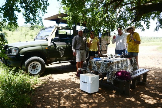 “Svegliarmi alle 3 e mezza del mattino per andare a visitare un parco nazionale? Mai!”, avevo tuonato più volte fin poche ore prima di quell’alba ancora buia in cui mi sono alzata per partire per il nostro primo vero safari: ci aspettava il parco nazionale Hluhluwe-iMfolozi, la più antica riserva naturale del Sud Africa. Nella notte ci attendeva al di là del portone una jeep con la nostra guida, Jeff Asher-Wood, e una coppia di architetti olandesi. Siamo state fortunate ad avere Jeff come guida: senza di lui non solo avremmo avuto una esperienza meno ricca, ma saremmo state impreparate rispetto alle tante ore di safari che avremmo vissuto nei giorni seguenti. La passione per il proprio mestiere e l’amore per la natura si trasmettono, eccome: Jeff, una sessantina d’anni ben portati, ci ha fatto subito capire che significa fare la guida in un parco africano. Una visita di otto ore perfettamente programmata nelle soste: un buon caffè bollente con biscotti alle 7 (solo alle 6 eravamo entrati nell’iMfolozi, dopo avere costeggiato villaggi zulu colle tipiche casette in muratura a pianta circolare), e poi alle 13 un pranzo servito in una radura, con tanto di sedie e tavolino, su cui ci sono stati serviti carne alla brace e un buon vino fresco, pane, dolci e frutta