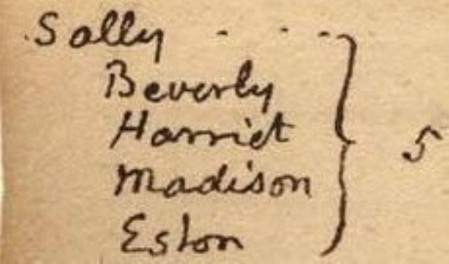 Nei cartelli che spiegano la storia della piantagione ai turisti che la visitano, e nei documenti che raccontano la storia di questa tenuta, quasi sempre i personaggi bianchi sono accennati con i loro nomi completi: Thomas Jefferson, o le sue figlie Martha Jefferson Randolph, e Maria Jefferson Eppes. Certamente, non ci sono riferimenti a “Tommy” Jefferson.Ma questa dignità è rifiutata a una donna nera, Sarah Hemings, che ebbe una relazione con Jefferson per più di 38 anni, e gli diede per lo meno quattro figli che sopravvissero all’infanzia. Lei è sempre menzionata con il soprannome diminutivo “Sally”. Ho fatto notare questa ingiustizia alle autorità di Monticello, sino adesso con risultato negativo.